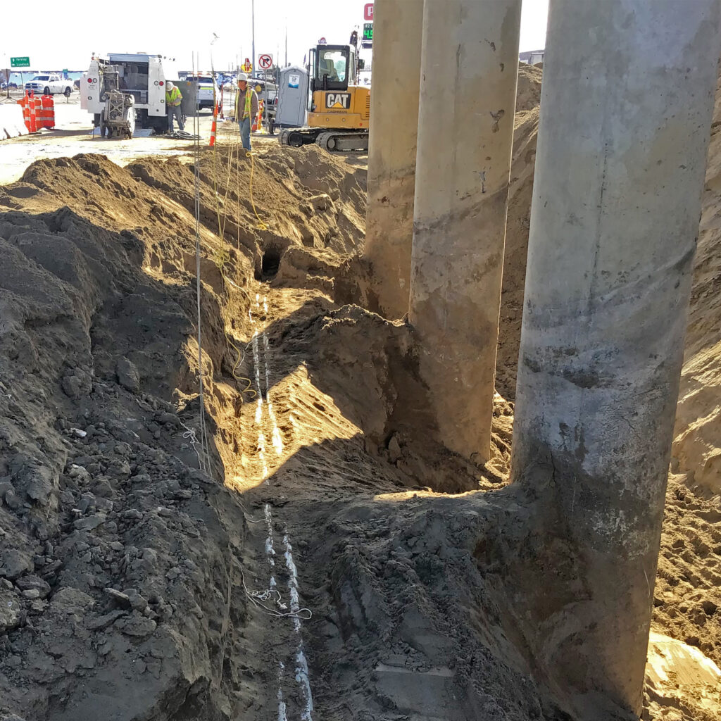 A major milestone was the use of Ultra High Performance Concrete (UHPC) on the I-717 structure—the first time UHPC was used in a completed project in Nevada. To allow for this, full traffic crossovers were constructed, temporarily shifting traffic to one side of the freeway during work. Other bridges required pier cap extensions and post-tensioning as part of seismic restraining upgrades. The team also encountered unforeseen utility conflicts, including one at a bridge footing that delayed work on an underpass. Despite these challenges, Q&D and NDOT restored the interstate to its original configuration within one season.